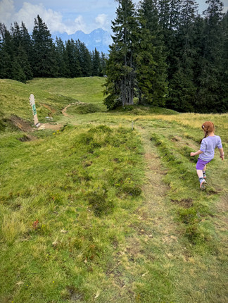 3 km downhill hike with fun stations to craft a magic healing potion for Marmot Flumsi. Alpine playground with a pump track, mini-golf, and climbing tower. No strollers.